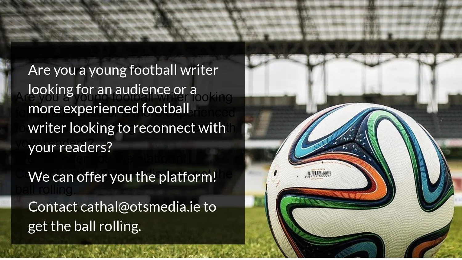 On a day of opportunity for Irish Football, see image above. Email: cathal@otsmedia.ie if you’re interested in an exciting, upcoming project!